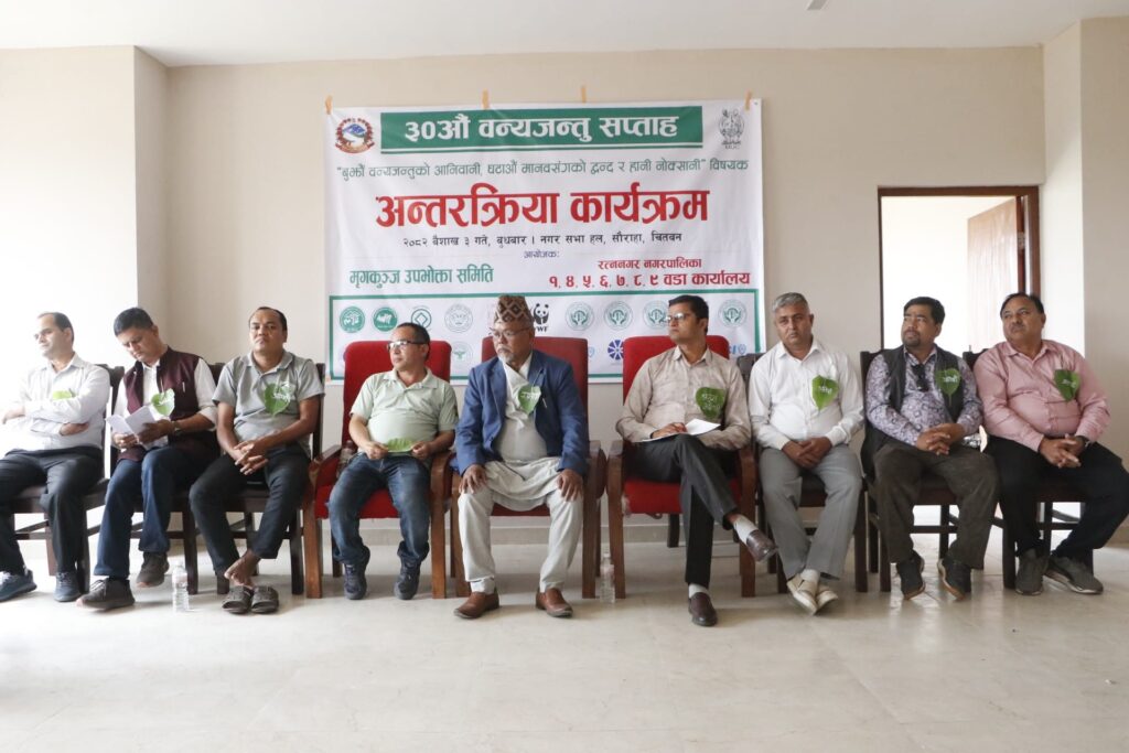 यसैगरी, सप्ताहव्यापी कार्यक्रम अन्तर्गत बुधवारै “बुझौं बन्यजन्तुको आनीबानी, घटाऔं मानवसंगको द्वन्द र हानीनोक्सानी” विषयक अन्तरक्रिया कार्यक्रम गरिएकोछ ।